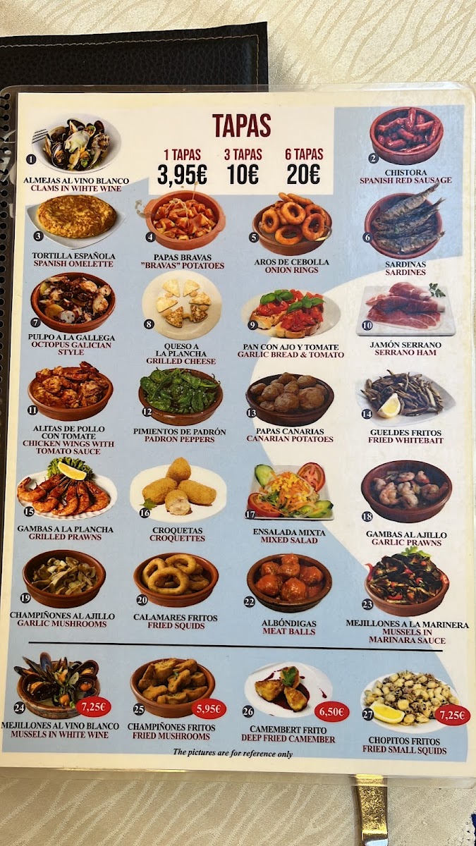 The menu features a variety of options that reflect its coastal setting and laid-back atmosphere. Fresh seafood dishes like garlic prawns, clams and mussels, or the classic paella marinara fit perfectly with the seaside mood, while hearty choices such as fillet steak or mixed grilled meat provide a more substantial option for those looking for something filling.
